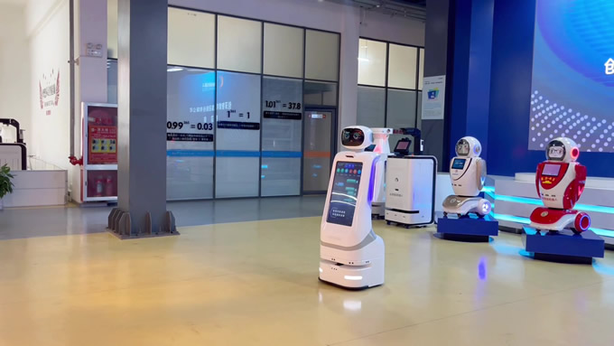 創澤智能消毒機器人和智能大屏機器人等多款機器人亮相蘭洽會,彰顯了創澤AI技術實力與場景深耕能力
