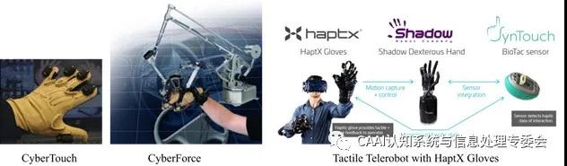 觸覺反饋對于接觸豐富的外部操作任務(wù)至關(guān)重要,觸覺設(shè)備已在外科手術(shù)機(jī)器人中得到廣泛研究,并用于在虛擬現(xiàn)實(shí)應(yīng)用程序中收集訓(xùn)練數(shù)據(jù),如HaptX development kit。一些商業(yè)產(chǎn)品CyberGlove、HaptX以物理阻力和空間接觸的形式提供了觸覺反饋,但是這種好處伴隨著成本的增加。HaptX與Converge Robotics Group(由國際公司組成的財(cái)團(tuán))共同開發(fā)了TactileTelerobot遠(yuǎn)程機(jī)器人,以推動(dòng)觸覺和機(jī)器人技術(shù)的發(fā)展 [6]。TactileTelerobot是世界上D一個(gè)能夠?qū)⒈普娴挠|摸反饋傳輸給位于世界各地的操作員的機(jī)器人系統(tǒng),該系統(tǒng)集成了三個(gè)主要產(chǎn)品,每個(gè)主要產(chǎn)品都在其類別中處于L先地位:Shadow Robot Hands,SynTouch BioTac傳感器和HaptX Gloves。Tactile Telerobot通過真實(shí)無延遲的觸覺反饋實(shí)現(xiàn)了多種機(jī)械手靈巧操作,如倒水、擰瓶蓋、轉(zhuǎn)魔方、寫字、開紙盒、幫人帶耳機(jī),甚至人體按摩等。