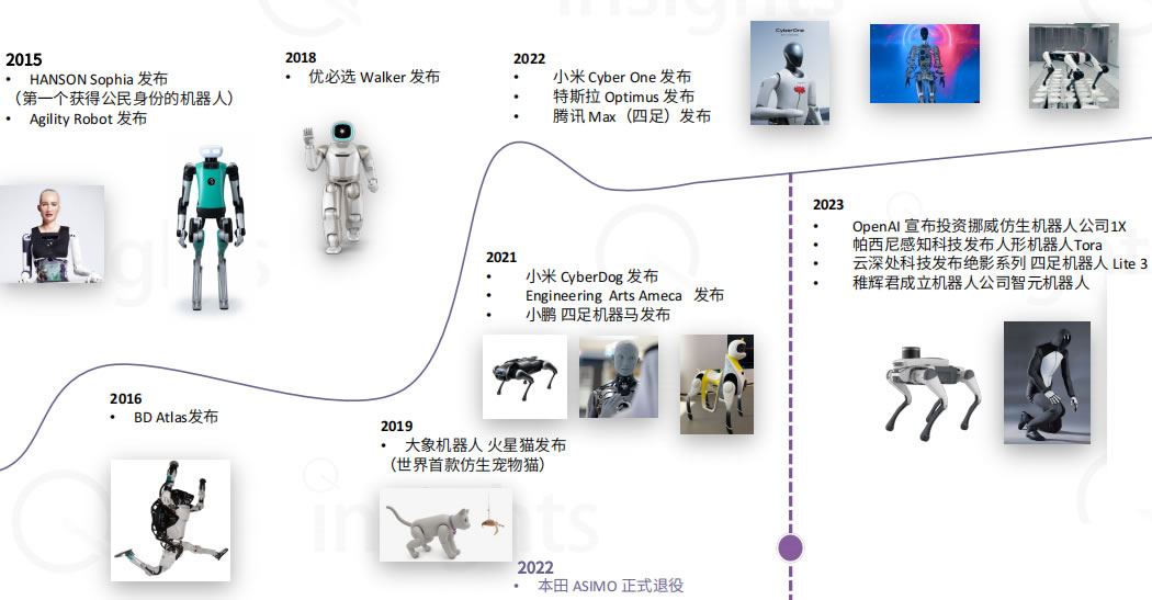 · 2021年前處于萌芽期, Spot 和 Atlas、ASIMO 等仿生機(jī)器人原型機(jī)的推出,影響國(guó)內(nèi)的許多G校和科技公司都加入研究。