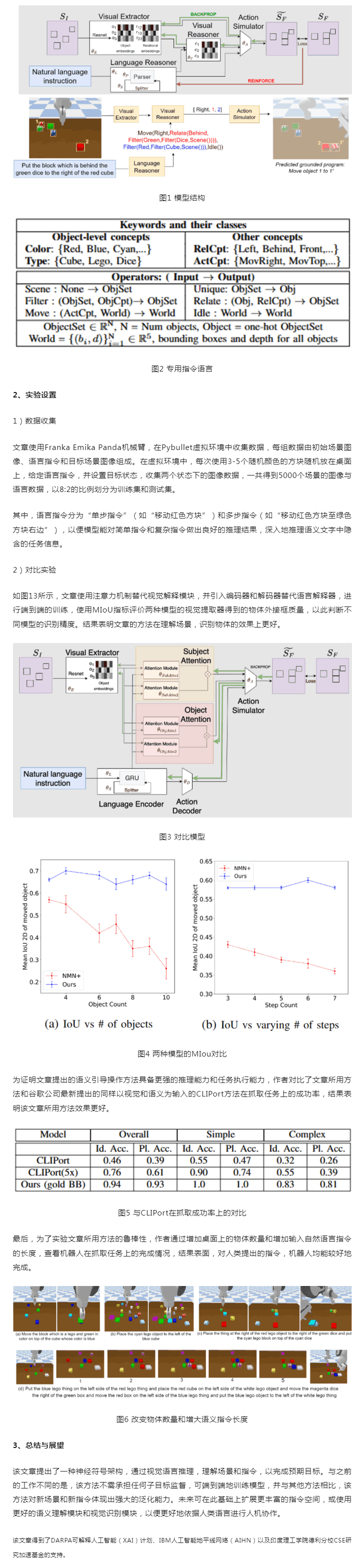 該文章提出了一種新型神經(jīng)符號模型,使用自然語言推理目標(biāo)場景,實(shí)現(xiàn)在給定初始場景和目標(biāo)場景的情況下即可學(xué)習(xí)執(zhí)行復(fù)雜的操作任務(wù),并展示了如何在不需要任何中間監(jiān)督的情況下,僅使用初始與目標(biāo)兩個(gè)場景作為監(jiān)督來獲取機(jī)器人操作動作的密集表示。 實(shí)驗(yàn)表明,該文章的方法可通過端到端的訓(xùn)練而不需進(jìn)行任何子目標(biāo)監(jiān)督,即可展現(xiàn)出強(qiáng)大的指令理解能力,并對新場景和指令展現(xiàn)出強(qiáng)大的泛化能力,為將來基于自然語言的人機(jī)協(xié)作,機(jī)器人的語義指令集的拓展提供了新的參考思路。