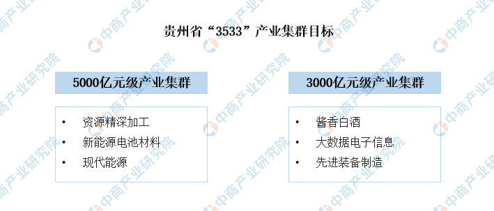 當(dāng)前貴州省錨定“3533”奮斗目標,加快構(gòu)建富有貴州特色、在國家產(chǎn)業(yè)格局中具有重要地位的現(xiàn)代化產(chǎn)業(yè)體系,到2027年形成資源精深加工、新能源電池材料、現(xiàn)代能源等3個5000億元級產(chǎn)業(yè)集群,醬香白酒、大數(shù)據(jù)電子信息、先進裝備制造等3個3000億元級產(chǎn)業(yè)集群。