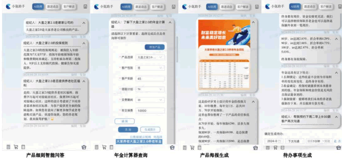 保險AI大模型助手已成功嵌入超過百款保險產(chǎn)品,并支持自動解讀保險條款,能夠針對涉及產(chǎn)品條款和年金計算等復雜問題進行實時響應。通過保險AI大模型助手的應用,可以實現(xiàn)以下效益: