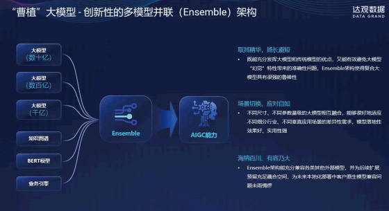 系統(tǒng)應(yīng)用BERT、GPT或其變體等先進的NLP大模型,以及知識圖譜、業(yè)務(wù)規(guī)則,結(jié)合達觀數(shù)據(jù)“曹植”大模型做多模型并聯(lián)結(jié)合。可擁有從數(shù)億到超過一百億的參數(shù)量,使其能夠有效地處理和分析大量該公司歷來文本數(shù)據(jù),用于客服問答、知識管理、制度管理、知識搜索等任務(wù)。