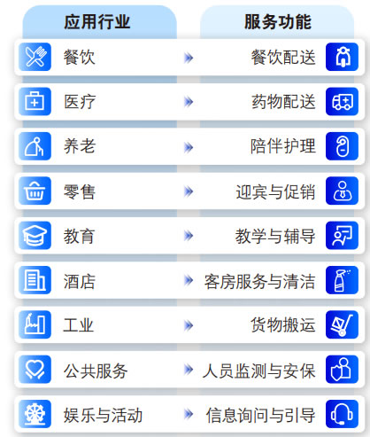 伴隨著技術(shù)的進步和市場需求的不斷提升 ,服 務(wù)機器人的應(yīng)用邊界正日益拓寬 ,從Z初的單 一行業(yè)擴展到多個領(lǐng)域 ,涉及餐飲、零售、酒 店、醫(yī)療、養(yǎng)老、娛樂體育、工業(yè)、教育和公 共服務(wù)等。服務(wù)機器人需要再跨場景中完成復 合型任務(wù),從專用邁向通用成為必然趨勢。
