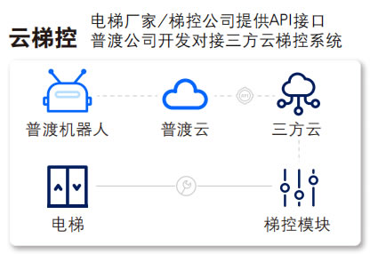云梯控通過云端API接口與電梯控制系統(tǒng)進(jìn)行 數(shù)據(jù)交互。服務(wù)機(jī)器人可以通過網(wǎng)絡(luò)訪問電 梯操作系統(tǒng),而無(wú)需對(duì)電梯進(jìn)行任何硬件改 造。這一過程依賴于云計(jì)算平臺(tái)的實(shí)時(shí)處理 和數(shù)據(jù)分析能力。云梯控的優(yōu)勢(shì)在于不需要 改造電梯,通過API接口實(shí)現(xiàn)機(jī)器人乘梯;兼 容性G,可以供不同類型的服務(wù)機(jī)器人在同 一個(gè)場(chǎng)景共同乘梯 ;功能實(shí)現(xiàn)靈活,可通過 電梯接口去實(shí)現(xiàn)不同乘梯需求。