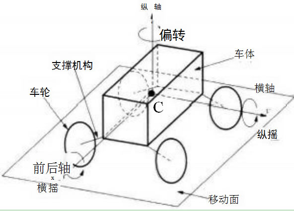 (1)車體:車體是車輪支撐機(jī)構(gòu)的安裝基座,在機(jī)械上起著決定各個(gè)車輪位置 關(guān)系的作用。另外,它在移動(dòng)面與各車輪、車輪支撐部分之間起到驅(qū)動(dòng)力和制動(dòng)力 等的力傳遞作用。在實(shí)施移動(dòng)時(shí),多數(shù)情況下需要將車體上的某特定位置定義為基準(zhǔn)點(diǎn),車體有時(shí)也充當(dāng)安裝搭載機(jī)械手等的基座。