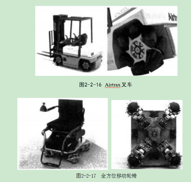 現(xiàn)在比較常見的全方位移動機構有:空氣懸浮式,全輪轉向式,如圖2-2-3 所示。麥卡納姆輪(MECANUM)S~7, 球履帶全方位移動機構8等。