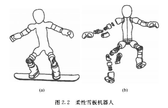 2000年,Soviknes 和 Sætveit 在提交給美國(guó)專(zhuān)利局的專(zhuān)利申請(qǐng)報(bào)告中,公開(kāi) 了一種柔性雪板機(jī)器人的設(shè)計(jì)[圖2.2(a)]2]。