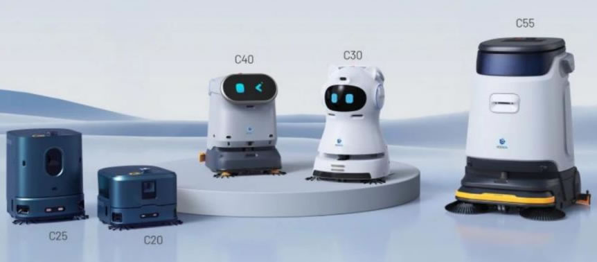 基于商業綜合體的復雜需求, 推出全場景清潔機器人矩陣,包括輕量小微場景水洗機器人 C20、輕量中小場景水洗機器人 C25、高端地面清潔機器人 C30、專業中小場景四合一清潔機器人 C40、專業中大場景 掃洗機器人 C55,通過多機協作與智能調度系統實現高效清 潔。