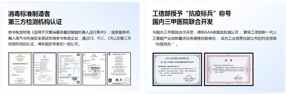 3月在疫情來臨時(shí),創(chuàng)澤集團(tuán)智能滅菌消毒機(jī)器人在D一時(shí)間奔赴一線上崗,以“AI防疫力量”助力多個(gè)醫(yī)療機(jī)構(gòu)實(shí)現(xiàn)“科技抗疫”。尤其在急診、發(fā)熱門診、隔離病房、人員密集公共場(chǎng)所等有效地減少了人與人之間的交叉感染,降低了病毒傳播的風(fēng)險(xiǎn),用AI技術(shù)服務(wù)守護(hù)百姓的健康。6月工業(yè)和信息化部公布了在科技支撐抗擊新G肺炎疫情中表現(xiàn)突出的人工智能企業(yè)名單,創(chuàng)澤集團(tuán)榜上有名,彰顯了“智能消毒滅菌機(jī)器人”在抗疫防疫中發(fā)揮了積J作用;7月創(chuàng)澤集團(tuán)“智能消毒滅菌機(jī)器人”榮獲麒麟杯《2020年度受用戶喜愛的抗疫機(jī)器人》稱號(hào);9月消毒機(jī)器人實(shí)地運(yùn)用某軍事演習(xí)行動(dòng);11月由創(chuàng)澤集團(tuán)牽頭起草的全國《應(yīng)用于滅菌消毒場(chǎng)景的智能機(jī)器人運(yùn)行條件》標(biāo)準(zhǔn)正式發(fā)布;此前智能消毒滅菌機(jī)器人已多次亮相各大峰會(huì)論壇,更獲得工信部、新華社等權(quán)威機(jī)構(gòu)表彰和報(bào)道。