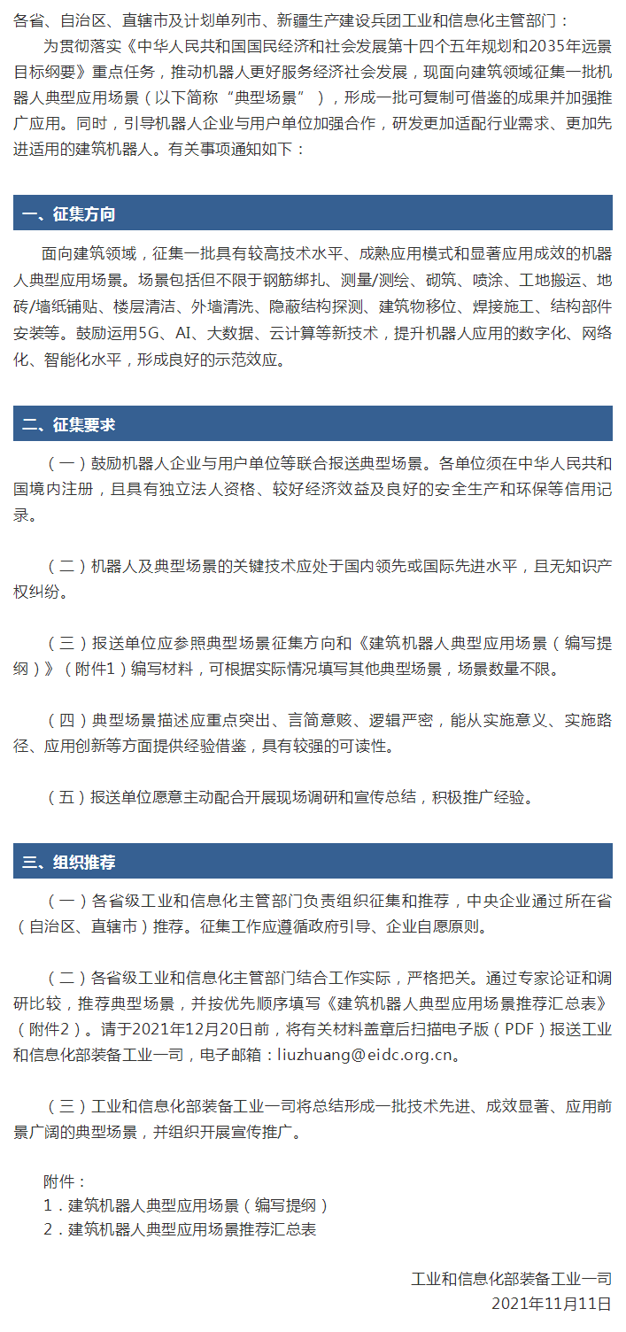 工通裝函〔2021〕372號,面向農(nóng)業(yè)L域,征集一批具有較G技術(shù)水平,成熟應(yīng)用模式和顯著應(yīng)用成效的機器人典型應(yīng)用場景,提升機器人應(yīng)用的數(shù)字化