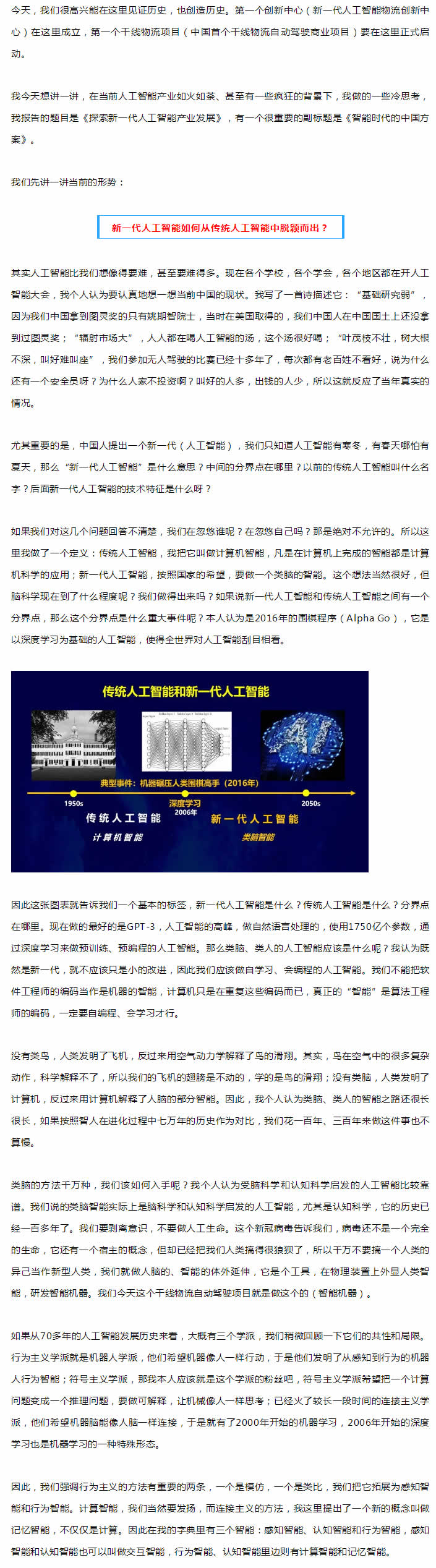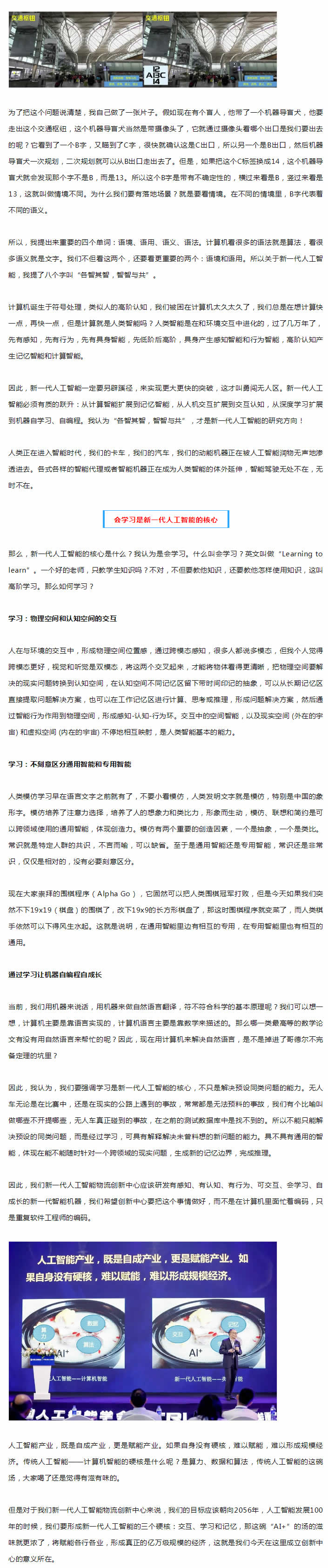 新一代人工智能一定要另辟蹊徑,來實現(xiàn)更大更快的突破,這才叫勇闖無人區(qū)。新一代人工智能需要有質(zhì)的躍升:從計算智能擴展到記憶智能,從人機交互擴展到交互認知,從深度學習擴展到機器自學習、自編程。我認為“各智其智,智智與共”,才是新一代人工智能的研究方向!