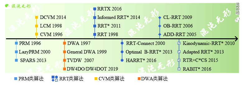 針對機器人運動規(guī)劃問題,除上述基于經典模型的規(guī)劃算法外(《圖規(guī)劃算法》、《空間采樣算法》和《曲線插值擬合算法》),還有神經網絡、模糊邏輯及基于自然靈感的算法(遺傳算法、粒子群算法、蟻群算法等),并逐漸成為研究熱點。