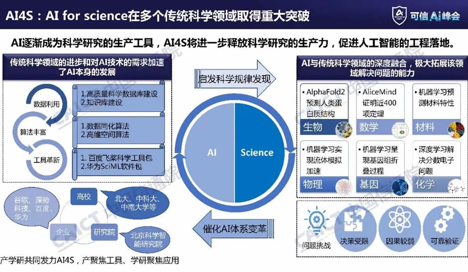AI for Science在多個傳統(tǒng)科學L域取得重大突破。隨著人工智能技術(shù)的快速發(fā)展和大規(guī)模應用,AI在逐漸成為科學研究新的生產(chǎn)工具,AI4S將進一步釋放科學研究的生產(chǎn)力,促進人工智能的工程落地。一方面,AI與傳統(tǒng)科學L域的深度融合,J大拓展該L域解決問題的能力,目前AI在生物、數(shù)學、材料、物理、基因、化學等基礎(chǔ)科學L域都取得了諸多成果和突破,并對科學研究范式產(chǎn)生了深刻的影響,例如,目前人工智能已經(jīng)能夠預測幾乎所有的生物蛋白質(zhì)的可能結(jié)構(gòu),被譽為人類在21世紀取得的重要的科學突破之一,可能開啟“數(shù)字生物學”的新時代。另一方面,傳統(tǒng)科學L域的進步和對AI技術(shù)的需求加速了AI本身的發(fā)展。當前產(chǎn)學研共同發(fā)力人工智能與科學的融合,產(chǎn)業(yè)界聚焦工具創(chuàng)新,開源工具和基于開源工具產(chǎn)生的創(chuàng)新成果呈爆發(fā)趨勢,AI4S的研究范圍也擴展到了更多基礎(chǔ)問題L域。G校和研究院聚焦算法和應用,用AI算法更好地將科學計算和物理模型相連接,進而指導科學與產(chǎn)業(yè)創(chuàng)新。