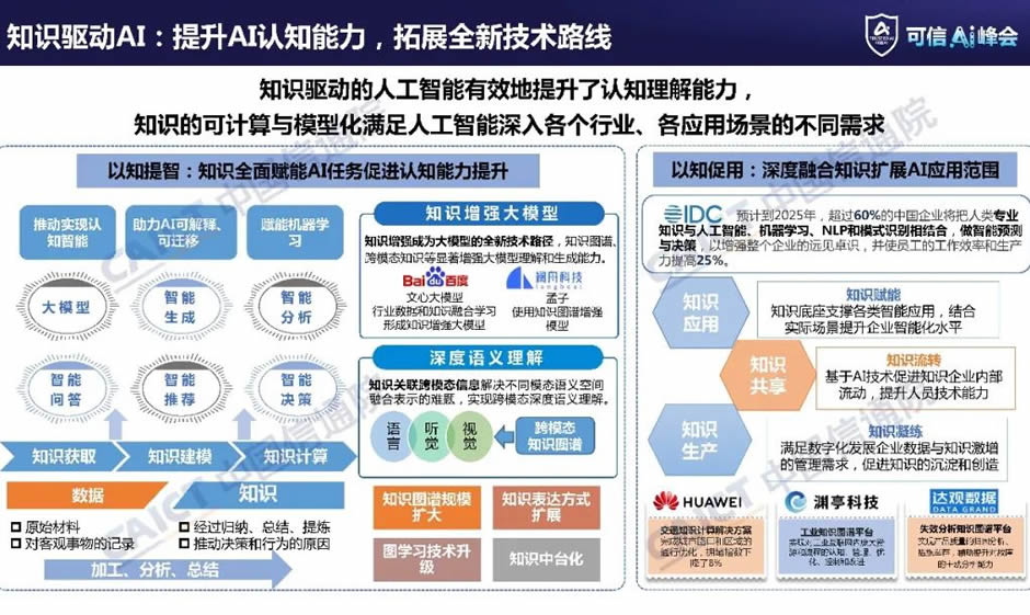 知識(shí)驅(qū)動(dòng)助力人工智能認(rèn)知能力的提升,滿足人工智能深入各個(gè)行業(yè)不同應(yīng)用場景的需求。隨著深度學(xué)習(xí)與知識(shí)圖譜等多重技術(shù)的深度融合,綜合利用大量知識(shí)數(shù)據(jù)中的因果和邏輯關(guān)系,可以助力人工智能認(rèn)知能力的提升,來解決人工智能深入各個(gè)行業(yè)時(shí)場景復(fù)雜、可解釋性較低等問題。在技術(shù)方面,知識(shí)和數(shù)據(jù)雙輪驅(qū)動(dòng)的人工智能技術(shù)路線展現(xiàn)了強(qiáng)勁的發(fā)展?jié)摿ΓR(shí)的融合應(yīng)用有效地提升了智能問答、智能推薦、大規(guī)模預(yù)訓(xùn)練模型等人工智能技術(shù)中的效果。文心大模型、孟子大模型等均嘗試?yán)弥R(shí)增強(qiáng)技術(shù)路線提升效果。在應(yīng)用方面,知識(shí)與人工智能的融合拓展了人工智能的應(yīng)用范圍,促進(jìn)形成知識(shí)凝練、知識(shí)流轉(zhuǎn)、知識(shí)賦能閉環(huán),推動(dòng)數(shù)字化發(fā)展下行業(yè)與企業(yè)各類知識(shí)的沉淀、流轉(zhuǎn),顯著提升實(shí)際場景的智能應(yīng)用水平。
