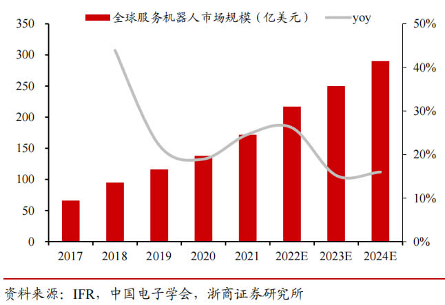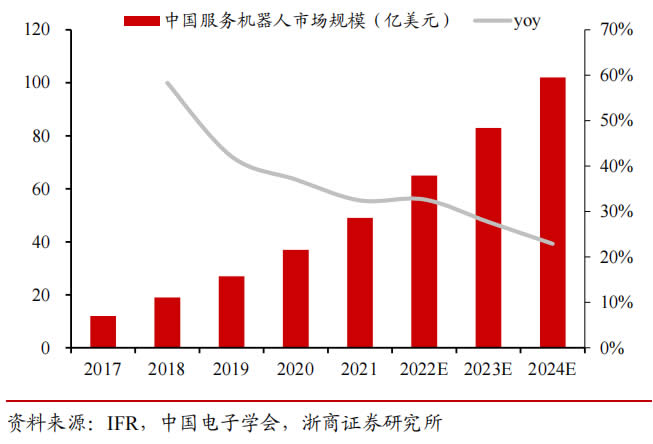 據中國電子學會數據,預計服務機器人市場規模