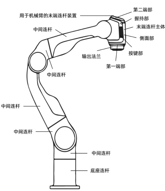 以思靈機(jī)器人機(jī)械臂產(chǎn)品為例,這是一種用于機(jī)械臂的末端連桿裝置,包括末端連桿主體,末端連桿主體設(shè)置在機(jī)械臂的輸出端;至少一個(gè)握持部,握持部能夠被握持,