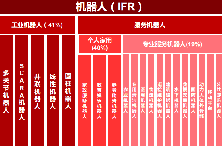 IFR將機(jī)器人劃分為工業(yè)機(jī)器人以及服務(wù)機(jī)器人;