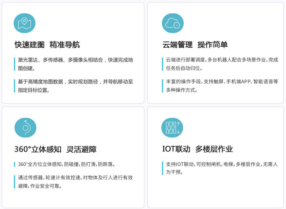 多重傳感器融合,自動(dòng)靈活避障,防撞,防打滑,安全可靠